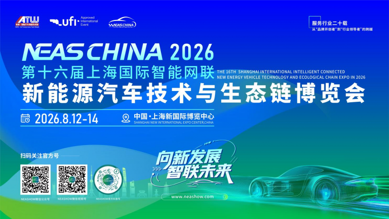 由英佛会展携手中国电工技术学会、上海市汽车工程学会及相关单位共同主办的“2026第十六届上海国际智能网联新能源汽车技术生态链博览会(NEAS CHINA 2026)”,将于2026年8月12日 - 14日在上海新国际博览中心隆重举办,目前展会已获得UFI权威认证。